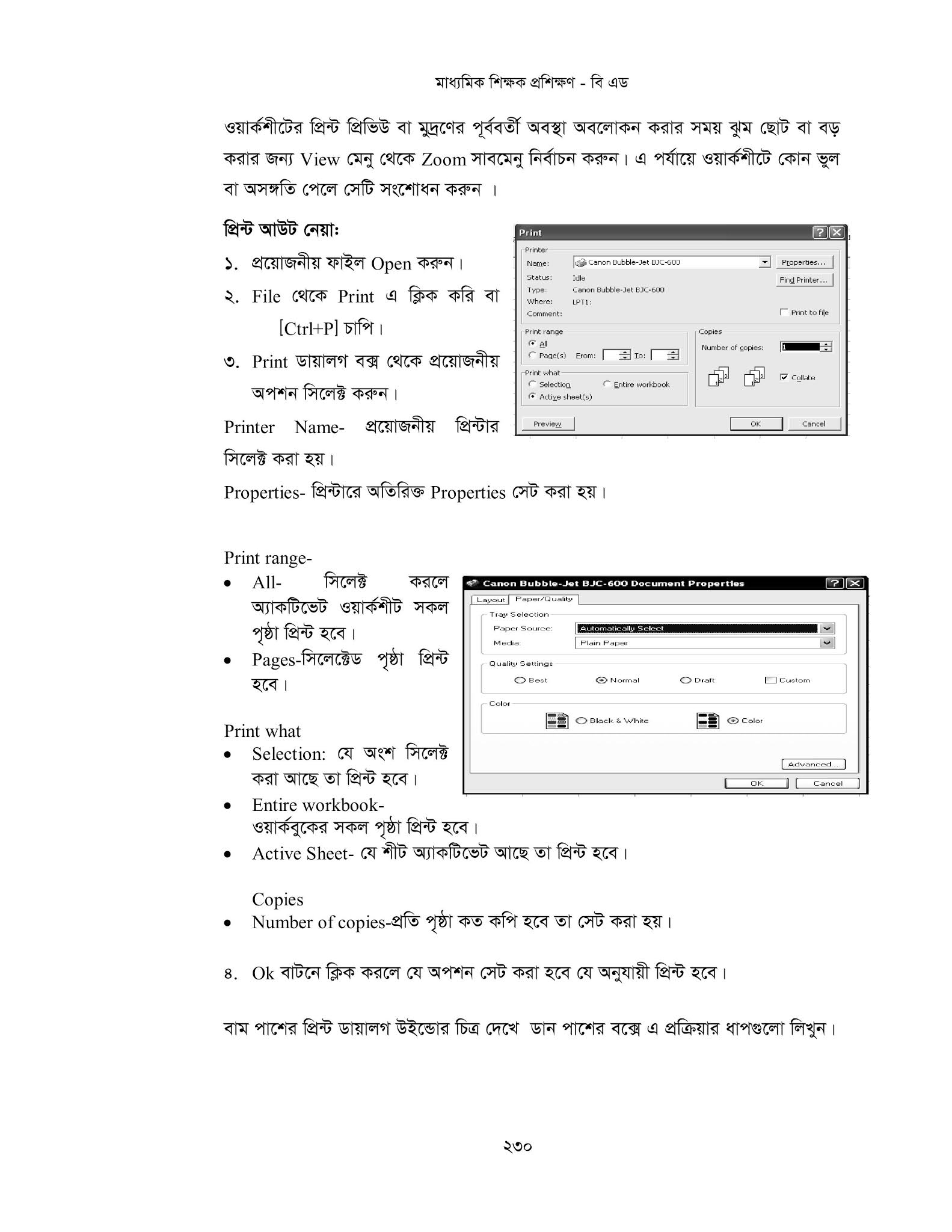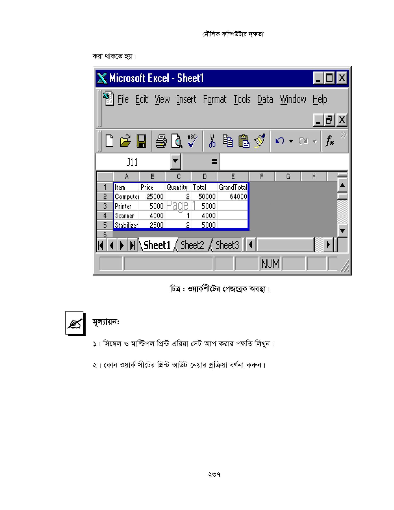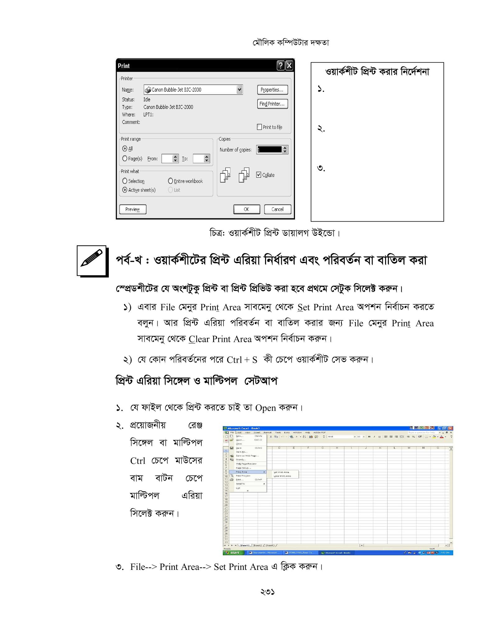 - প্রয়ােজনানুযায়ী ওয়ার্কশীট প্রিন্ট করবে।