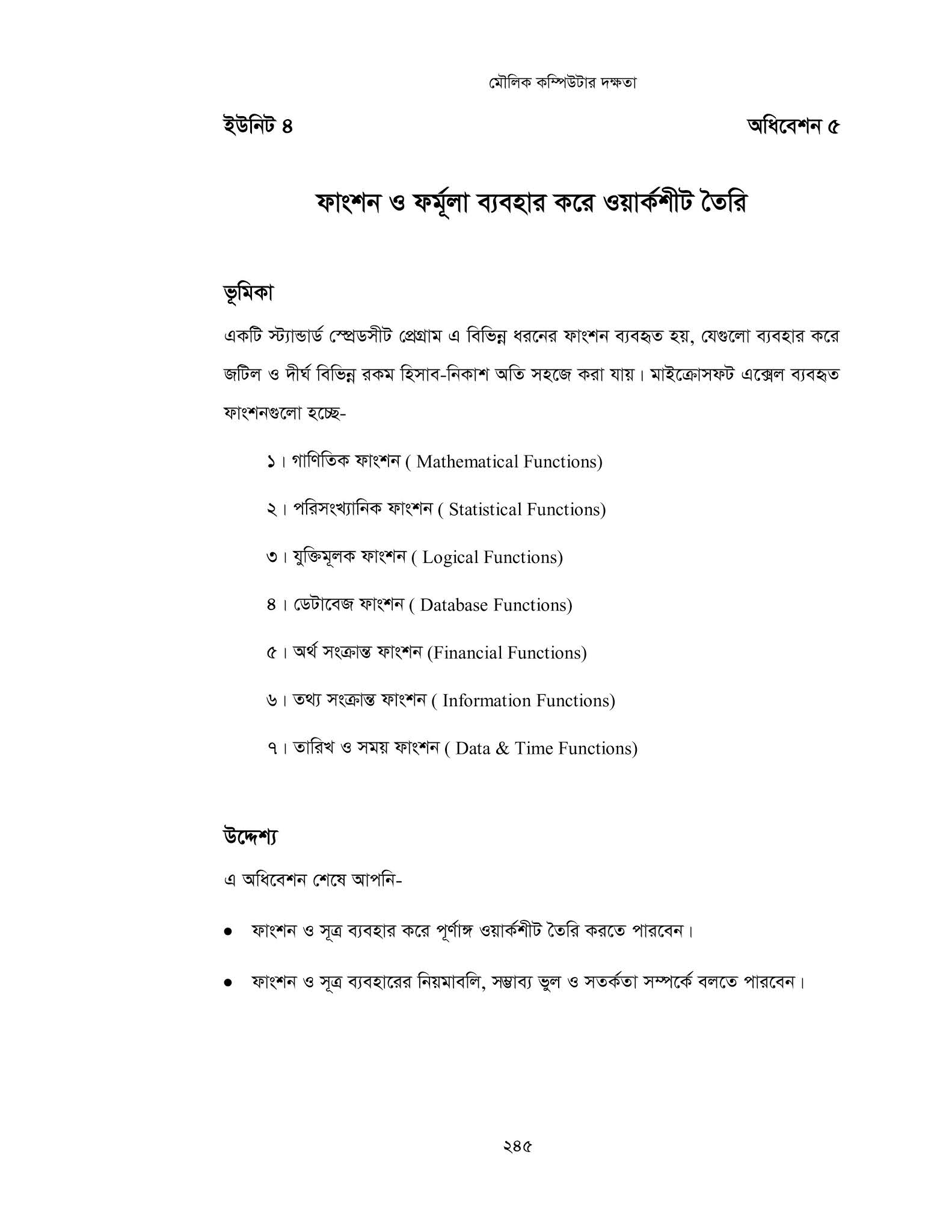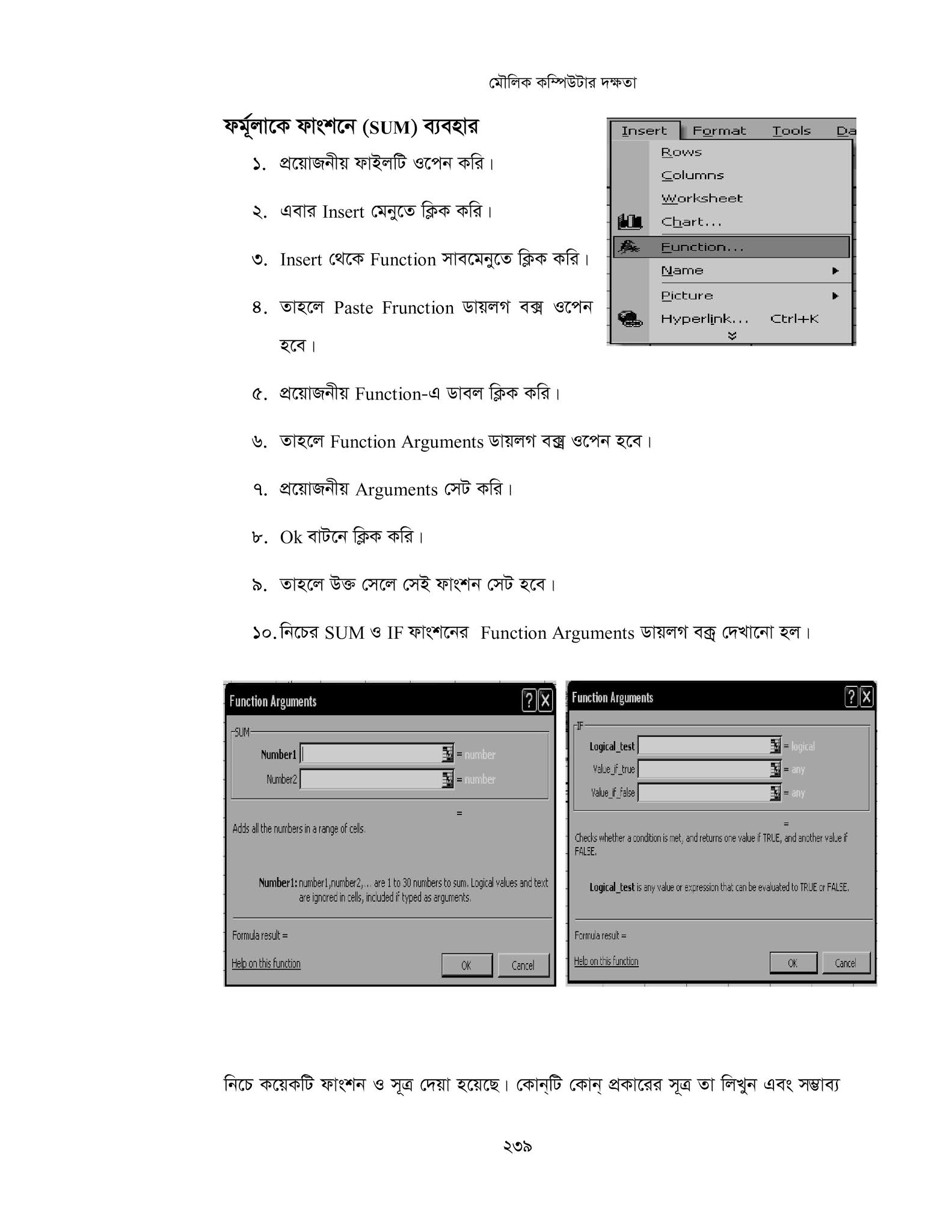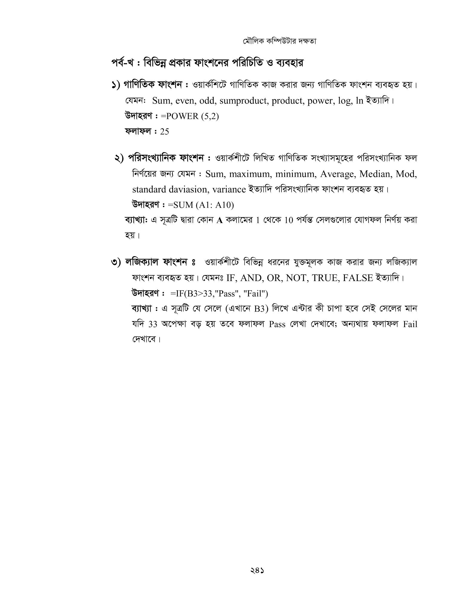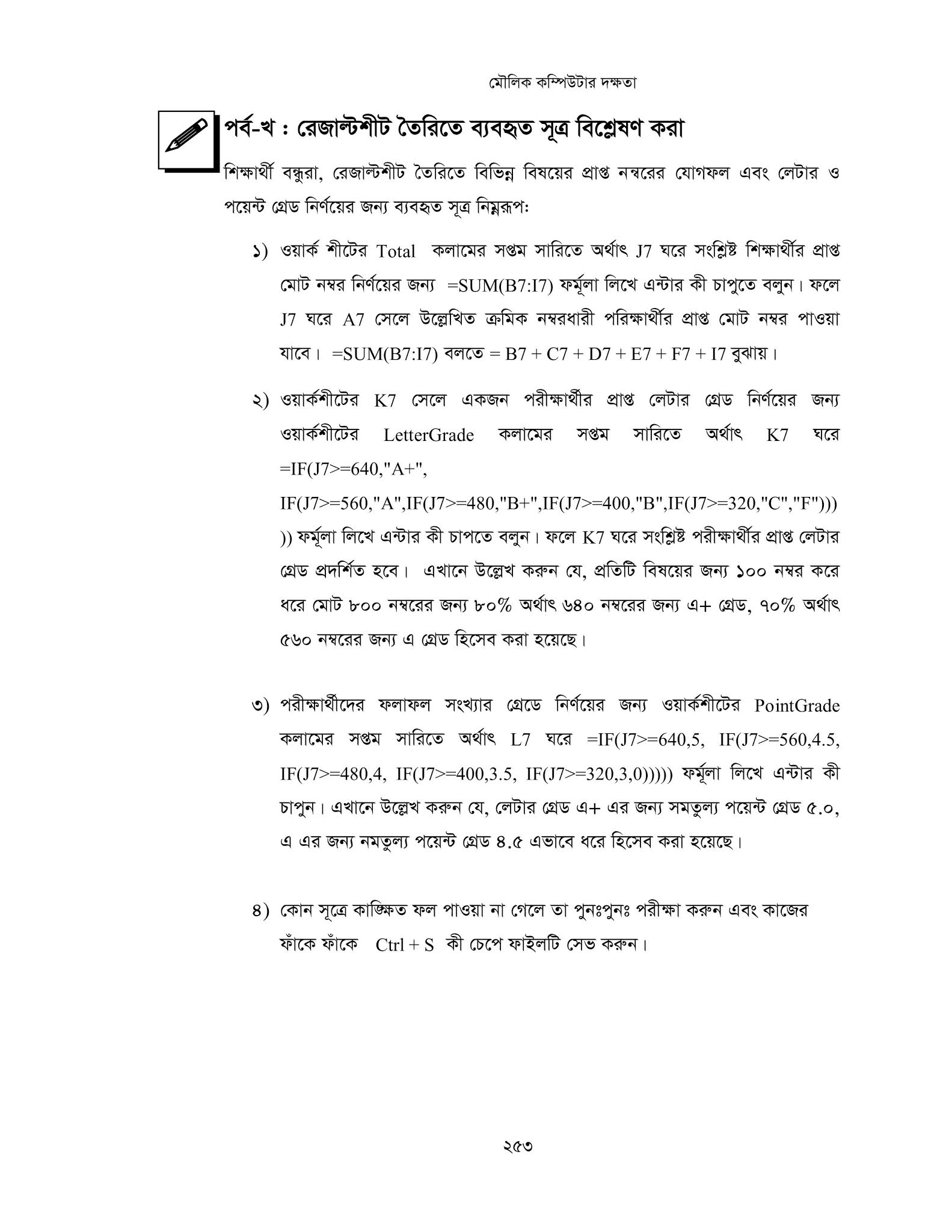 - IF, OR, ইত্যাদি লজিক্যাল ও গাণিতিক ফাংশন ব্যবহার করবে।