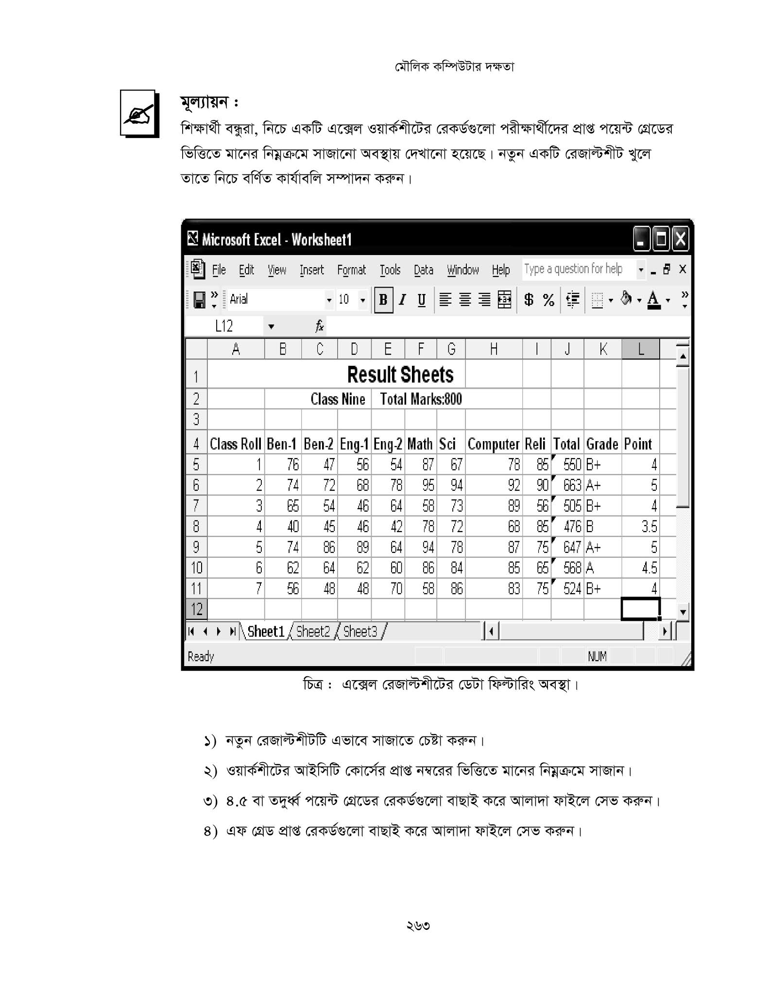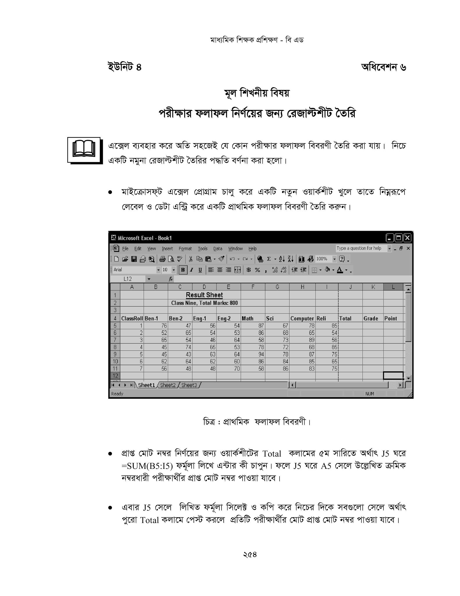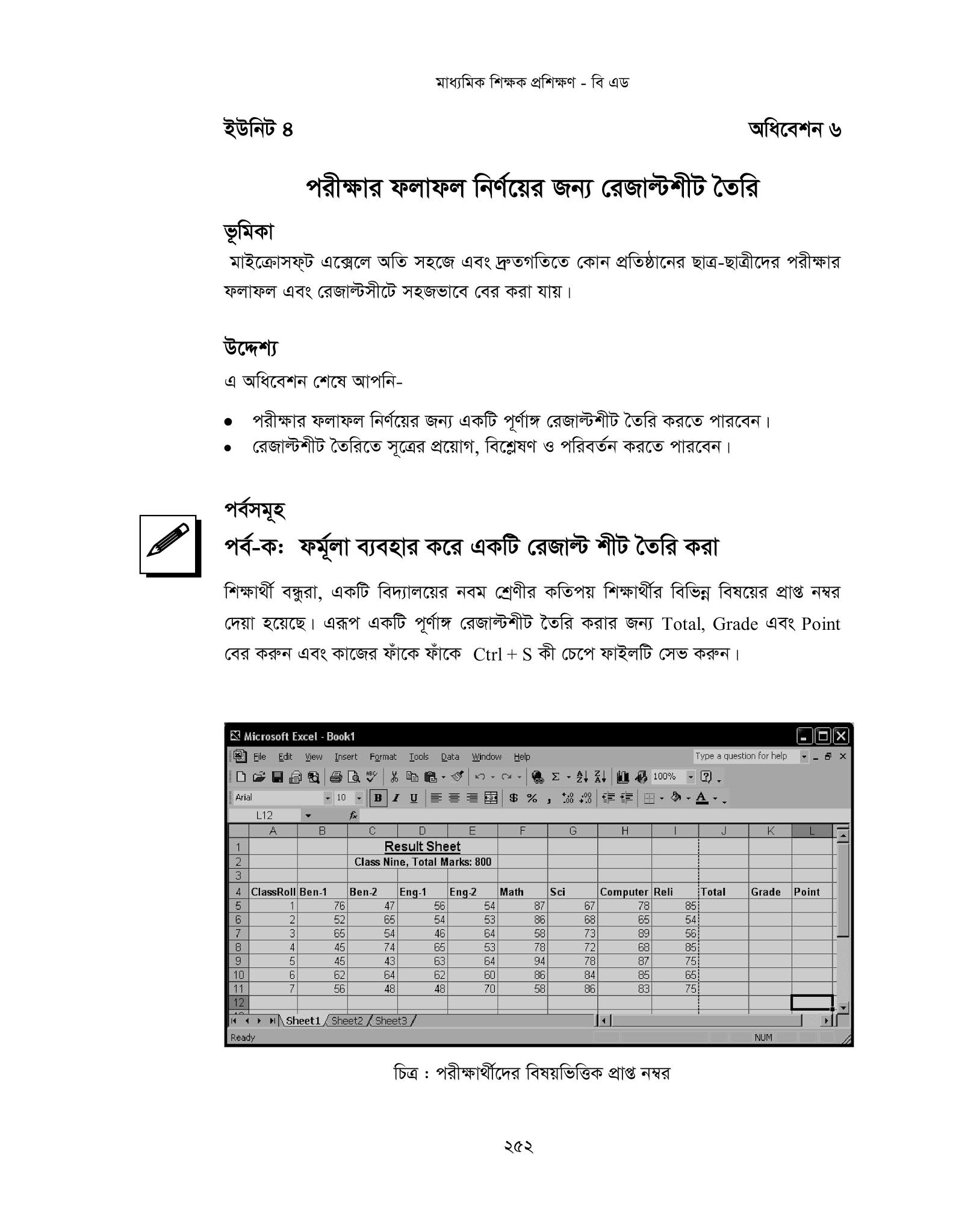 - মাইক্রোসফট এক্সেল-৭/১০ ব্যবহার করে ফলাফলশীট তৈরি করবে।