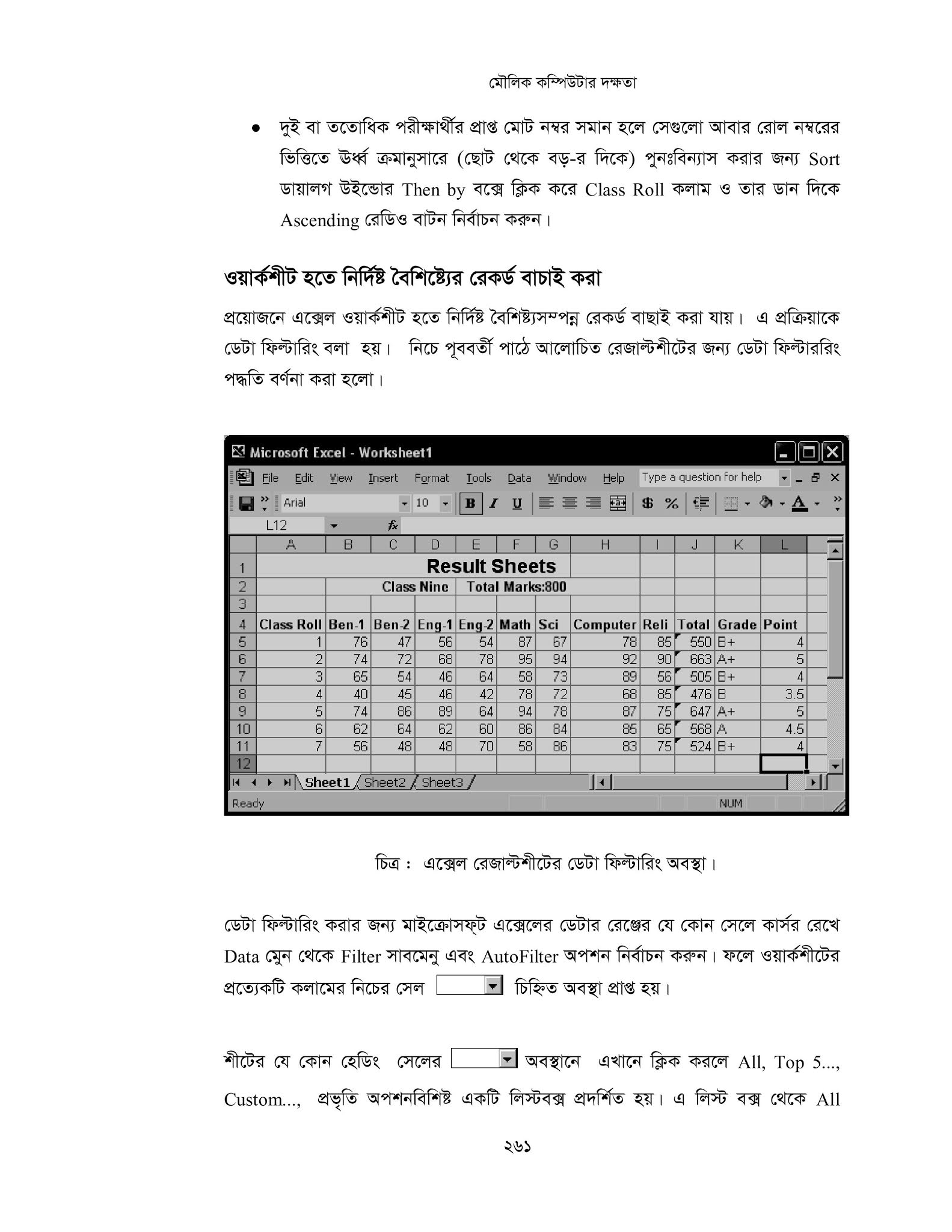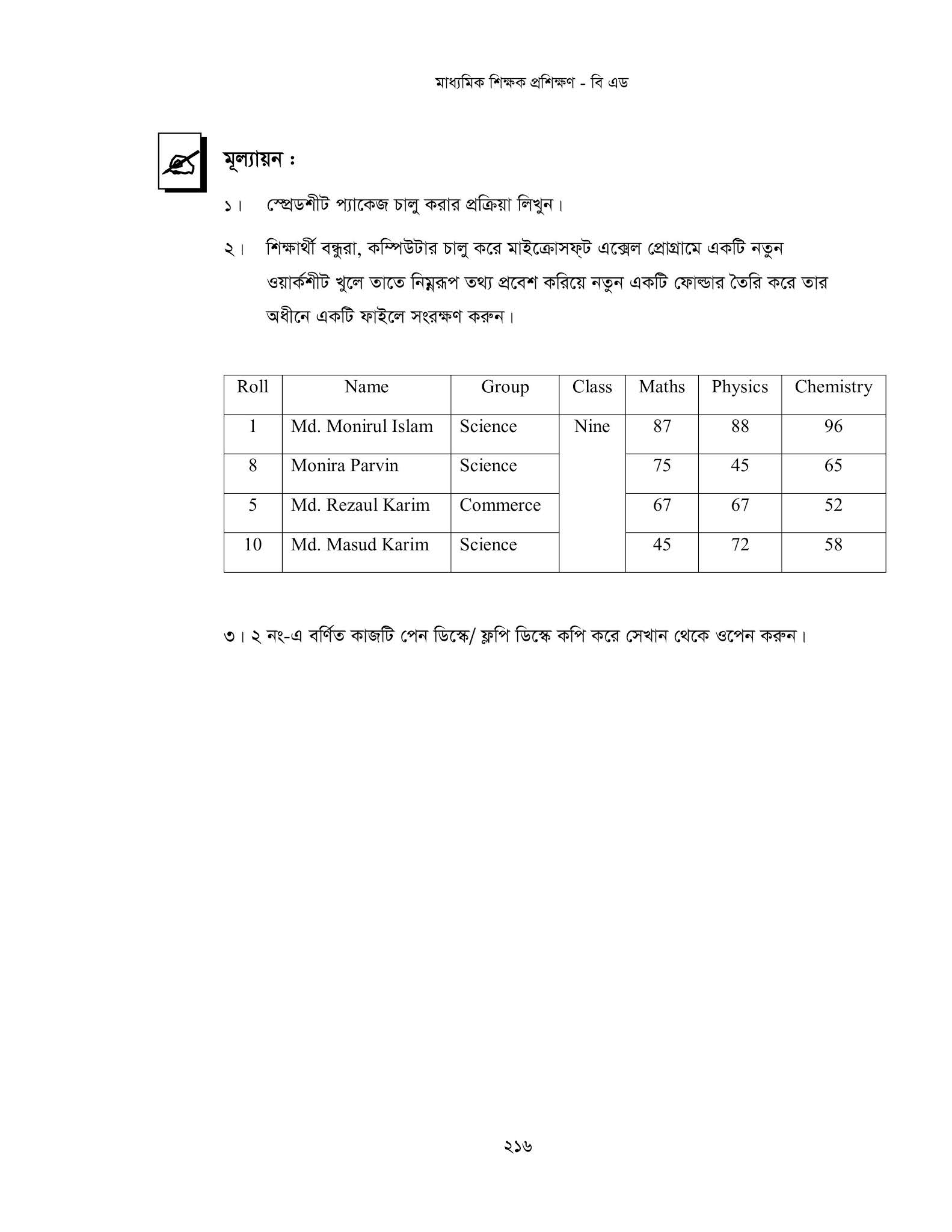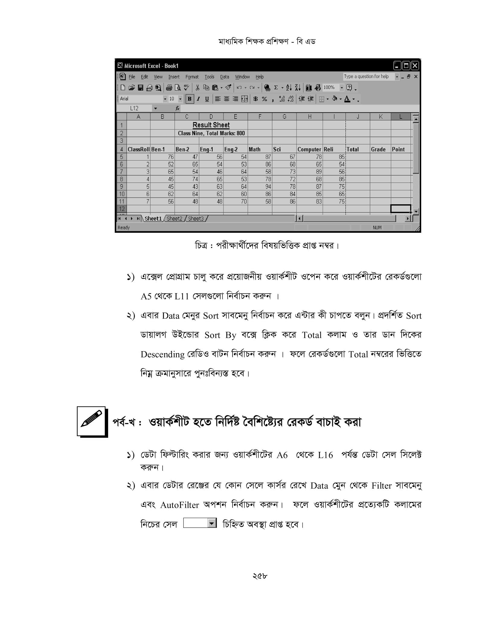 - মাইক্রোসফট এক্সেল-৭/১০ ব্যবহার করে ফলাফলশীট তৈরি করবে।