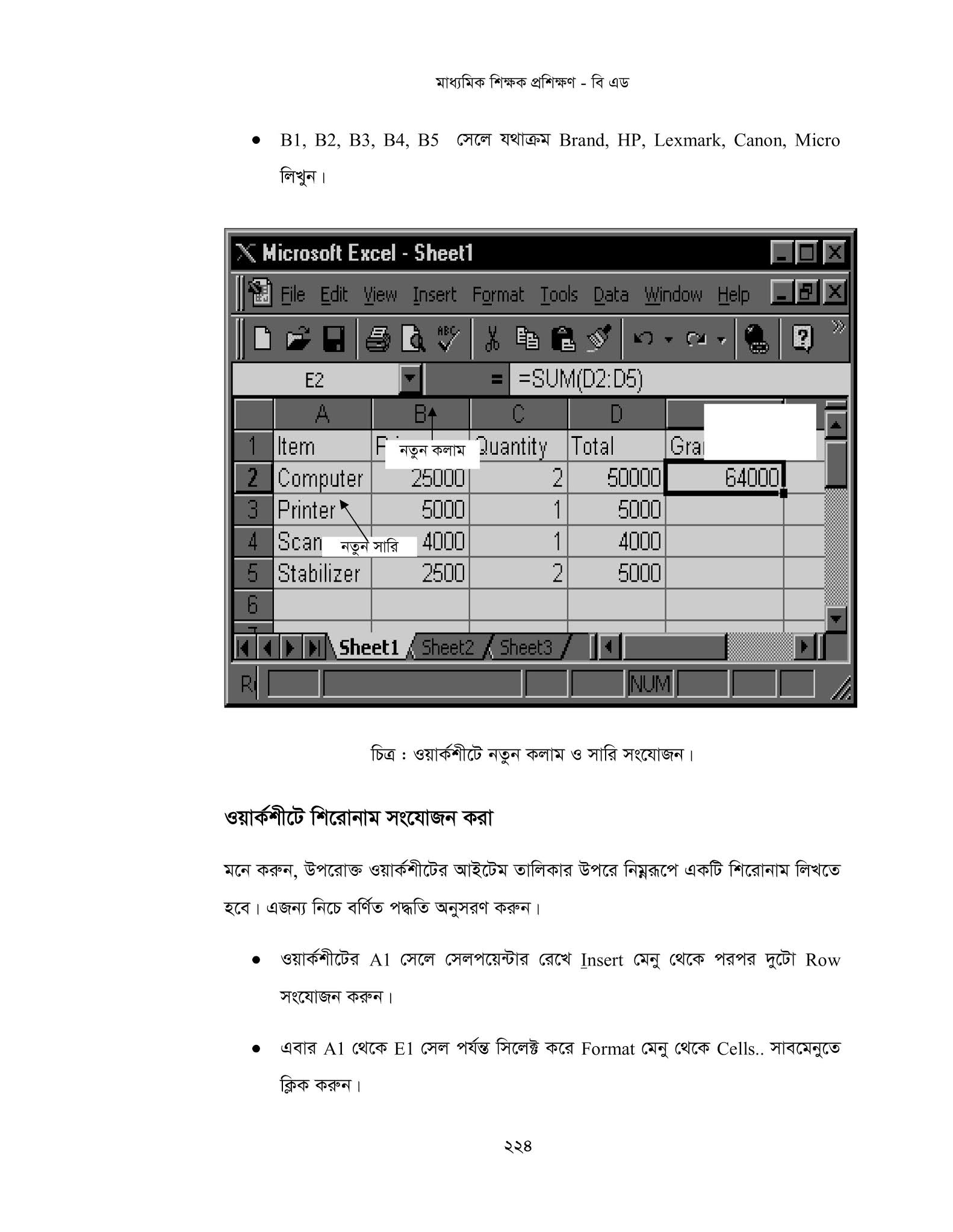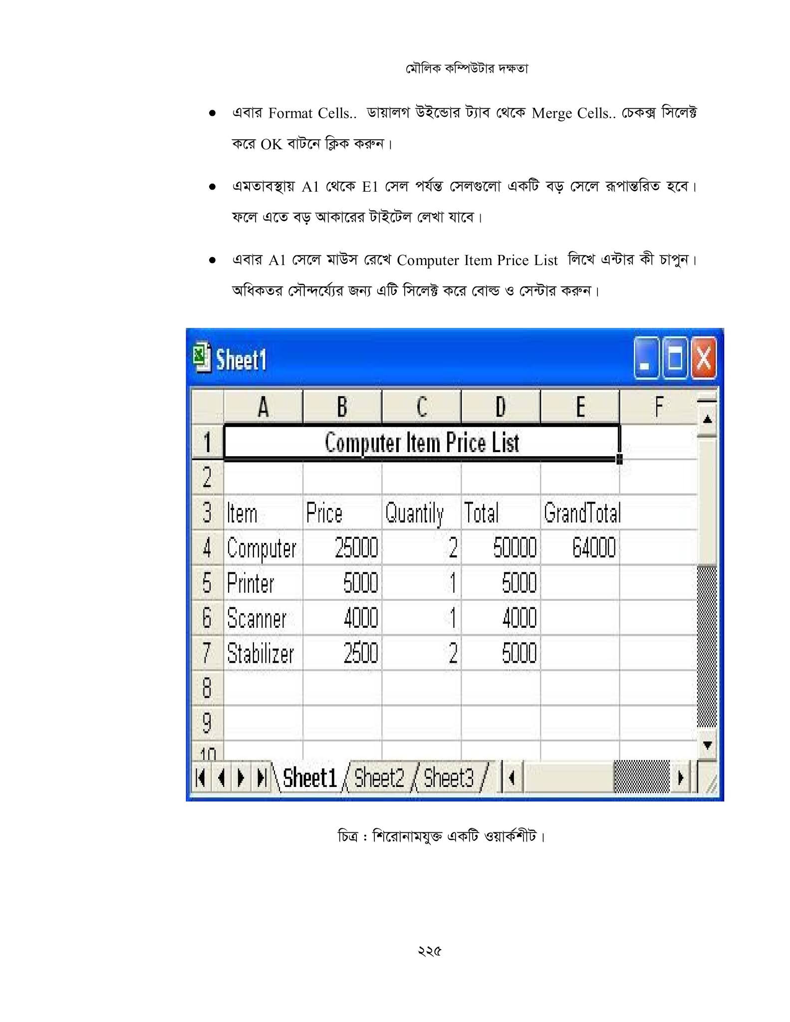 যেমনঃ E3 Cell এ Mouse Pointer রেখেঃ