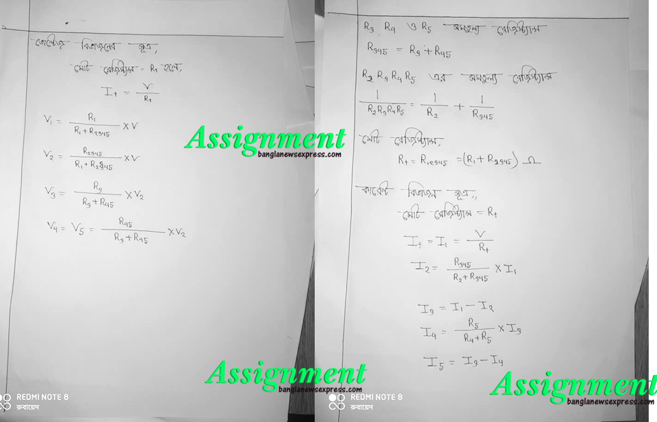 ১। সিরিজ প্যারালাল সার্কিট চিত্র অঙ্কন করে সার্কিটের বিভিন্ন অংশের কারেন্টের ভোল্টেজ বিভাজন নির্ণয়ের সূত্র লেখ