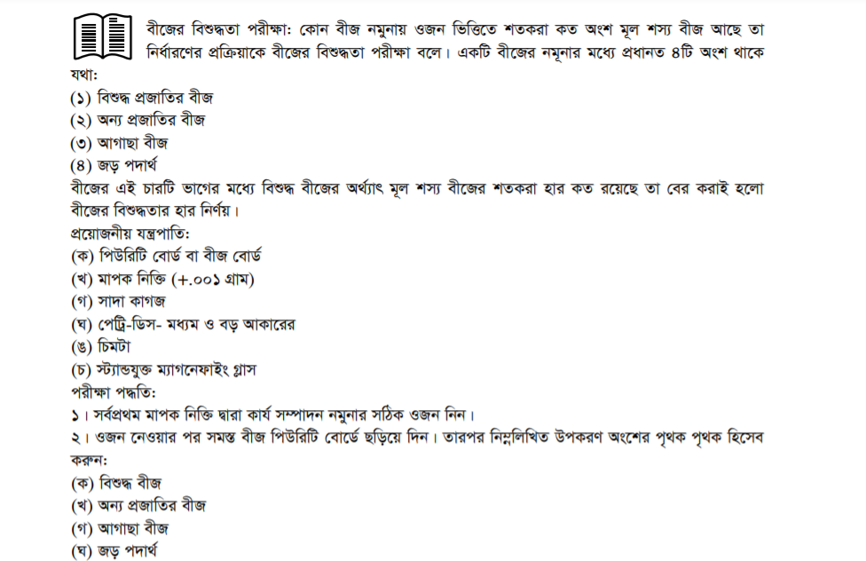 - ১. বীজের হার ও বপন পদ্ধতি বর্ণনা করতে হবে