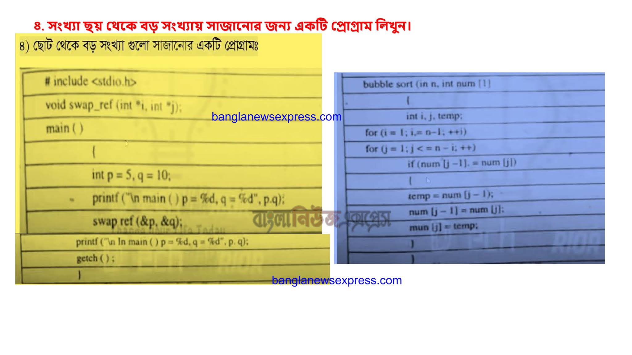 ৪। ছােট থেকে বড় সংখ্যা গুলাে সাজানাের একটি প্রােগ্রাম লেখ।