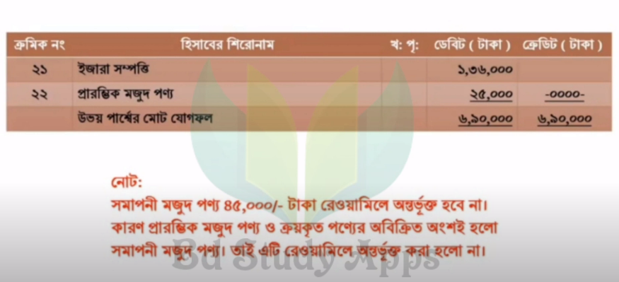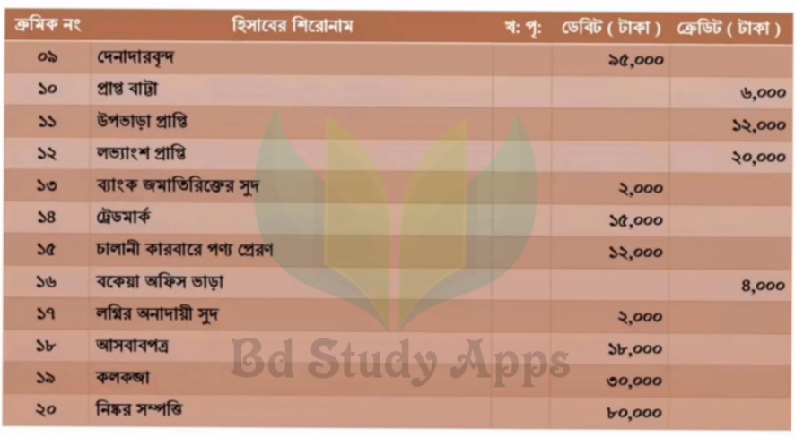 ক্রমিক নং | হিসাব বিবরণ | জা. পৃ. | ডেবিট টাকা | ক্রেডিট টাকা |