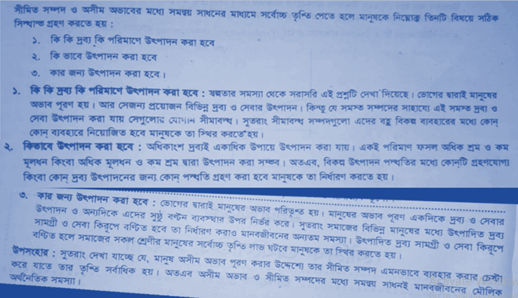 - অসীম অভাব পূরণ করার কৌশল যৌক্তিকভাবে ব্যাখ্যা করতে হবে ।