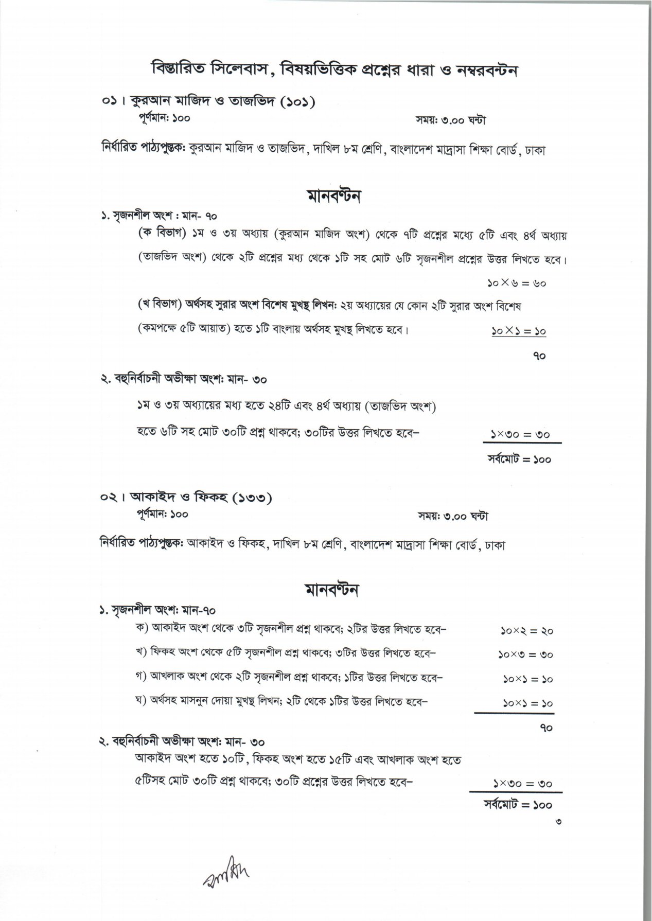 জেডিসি কুরআন মাজিদ ও তাজভিদ সিলেবাস ২০২১ | জেডিসি আকাইদ ও ফিকহ সিলেবাস ২০২১