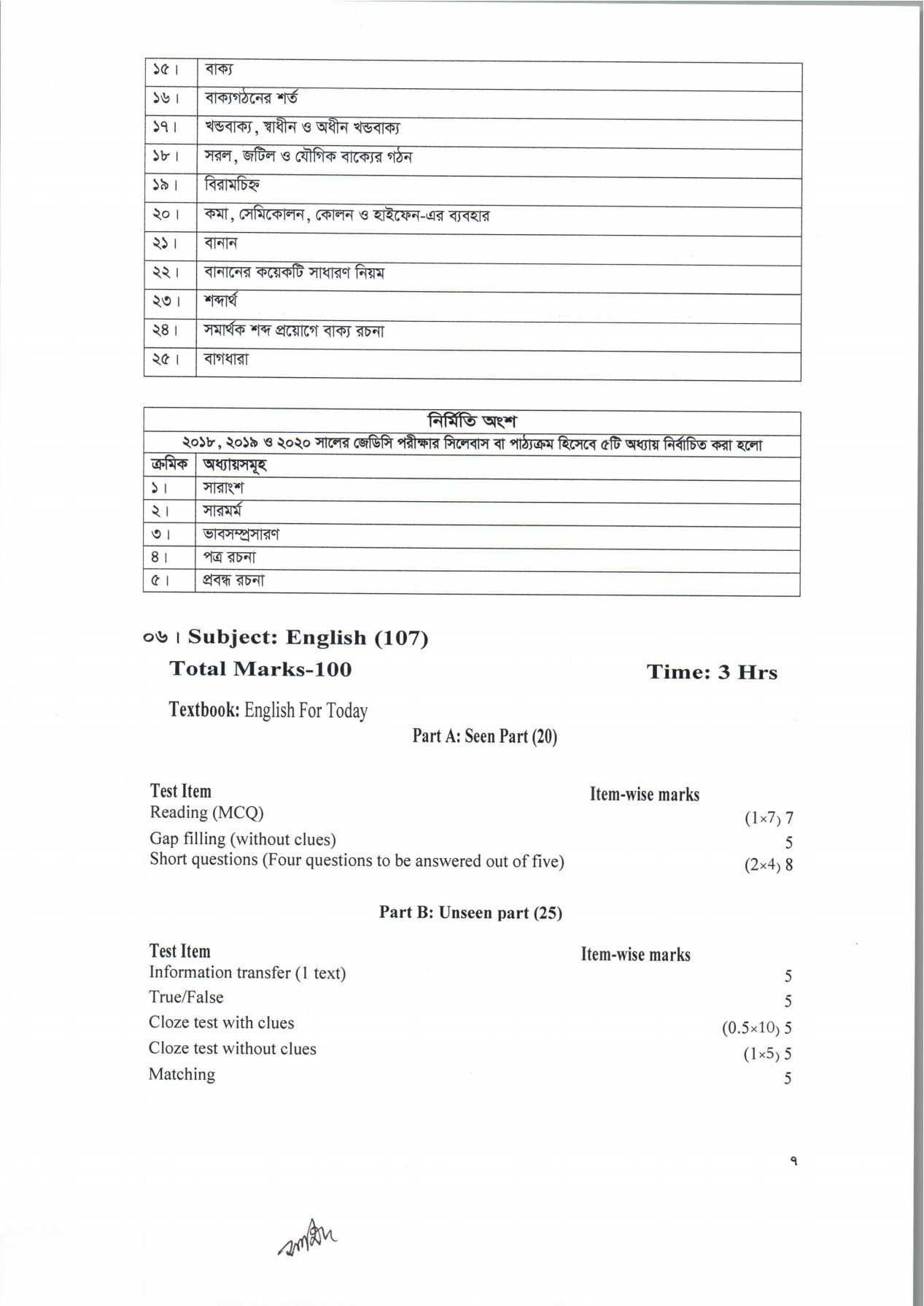 জেডিসি ইংরেজি সিলেবাস ২০২১ | ২০২১ সালের জেডিসি সিলেবাস