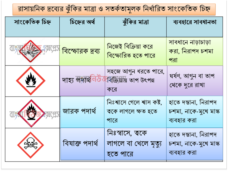 রাসায়নিক দ্রব্যের বিভিন্ন সাংকেতিক চিহ্নের ব্যাখ্যা।