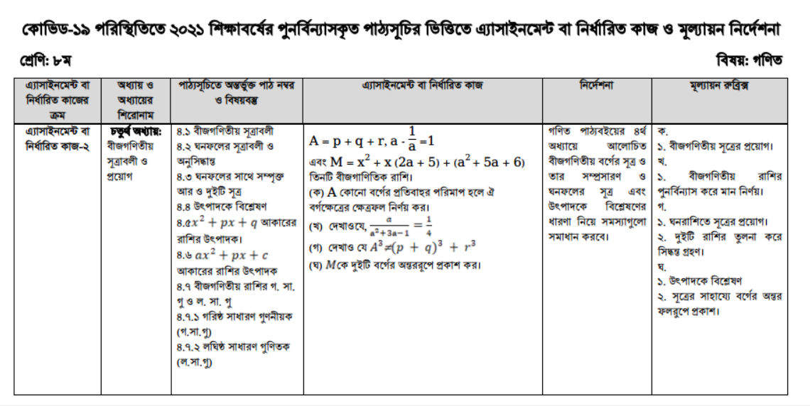 4 thoughts on “Class 8 Math Answer 7th Week Assignment Answer/Solution 2021, মাধ্যমিক ৮ম শ্রেণির গণিত ৭ম সপ্তাহের অ্যাসাইনমেন্টের সমাধান ২০২১”