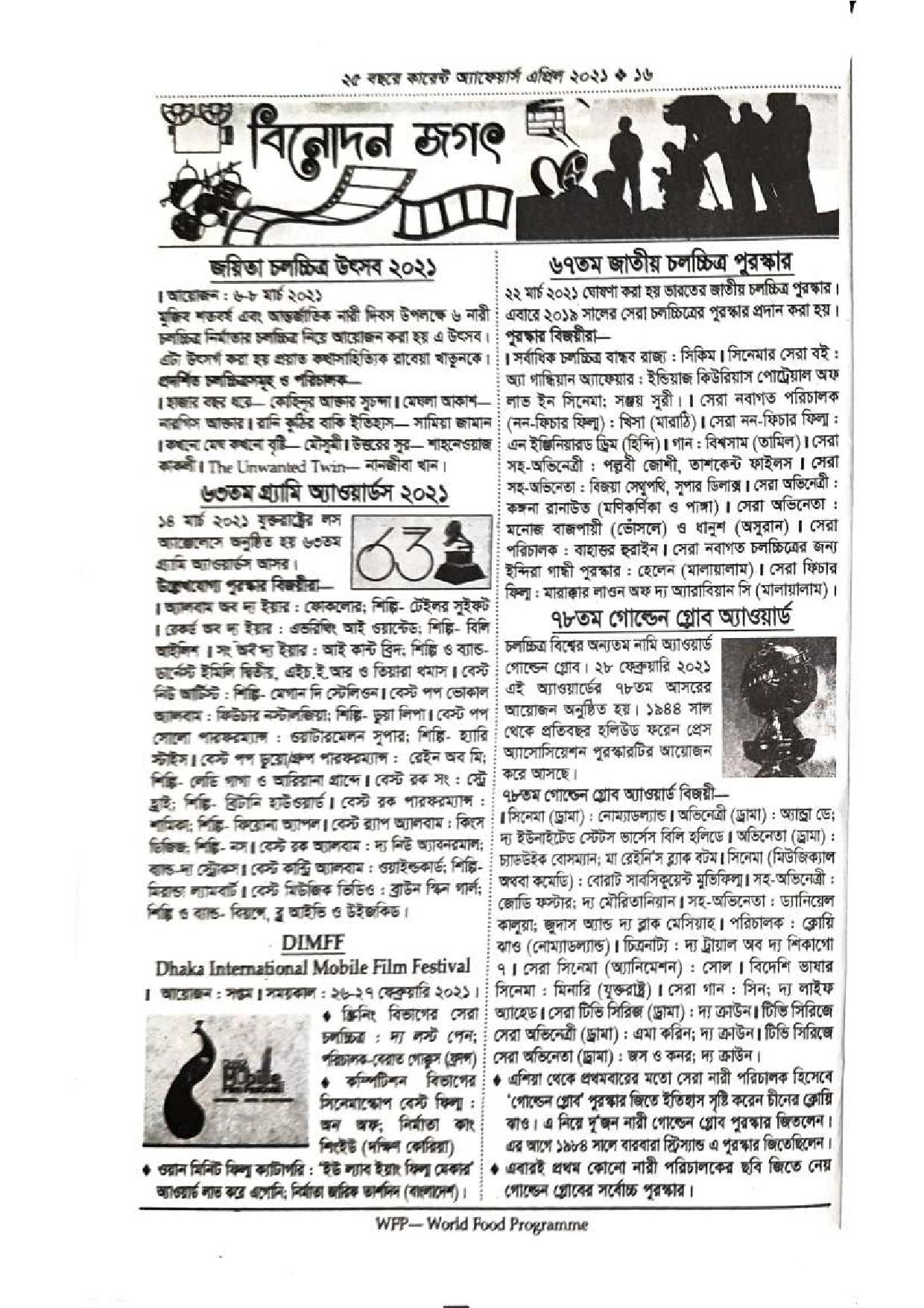 | কারেন্ট অ্যাফেয়ার্স এপ্রিল ২০২১ পিডিএফ | ডাউনলোড |