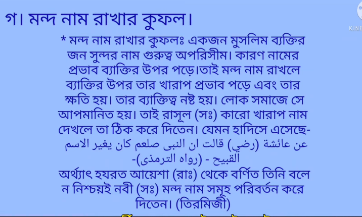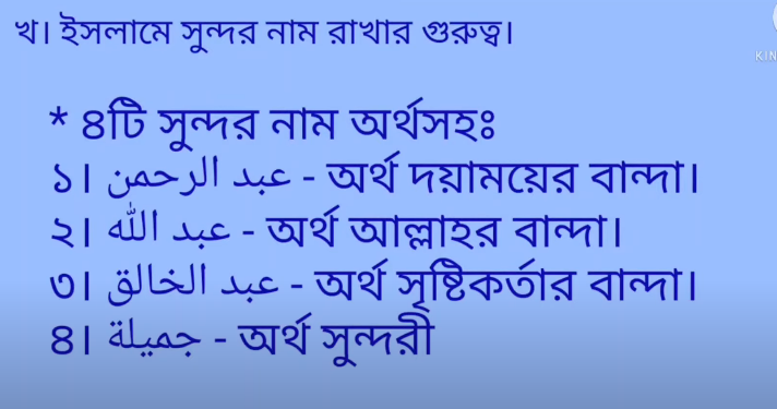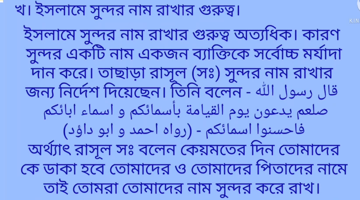 খ। ইসলামে সুন্দর নাম রাখার গুরুত্ব।