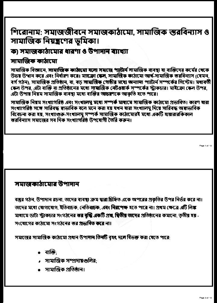 এসাইনমেন্ট শিরোনামঃ সমাজজীবনে সমাজকাঠামাে , সামাজিক স্তরবিন্যাস ও সামাজিক নিয়ন্ত্রণের ভূমিকা