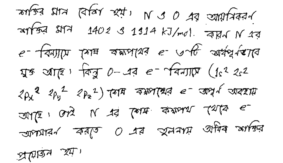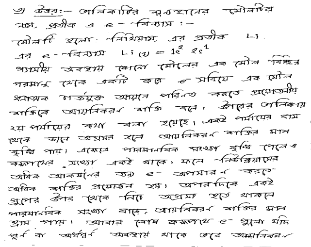 (খ) উপরের তালিকায় যে পর্যায়ের কথা বলা হয়েছে সেই পর্যায়ের মৌলগুলোর আয়নিকরন শক্তি কীরুপে পরিবর্তীত হয় তা ব্যাখ্যা করবে।