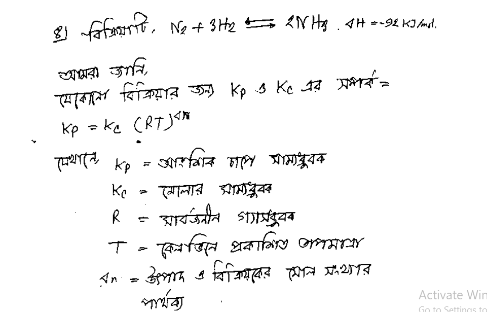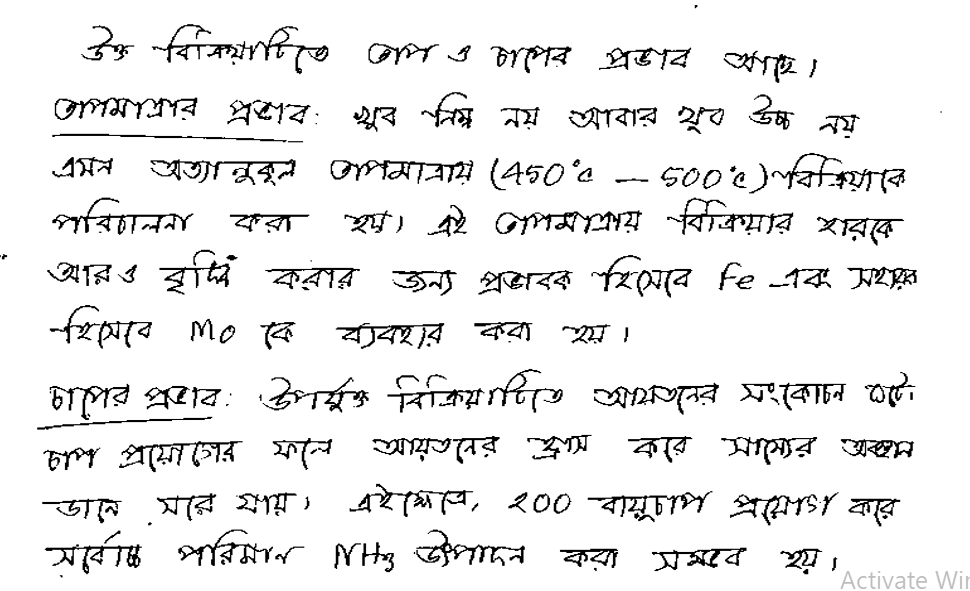 গ) উক্ত বিক্রিয়ার ক্ষেত্রে তাপ ও চাপের প্রভাব আছে কি না ব্যাখ্যা করবে।
