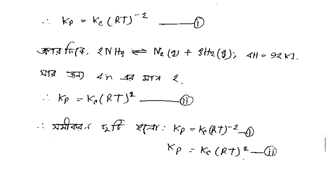 খ) উক্ত বিক্রিয়ার ক্ষেত্রে ভরক্রিয়ার সুত্র ব্যবহার করে K, ও K. এর সমীকরণ লিখবে।