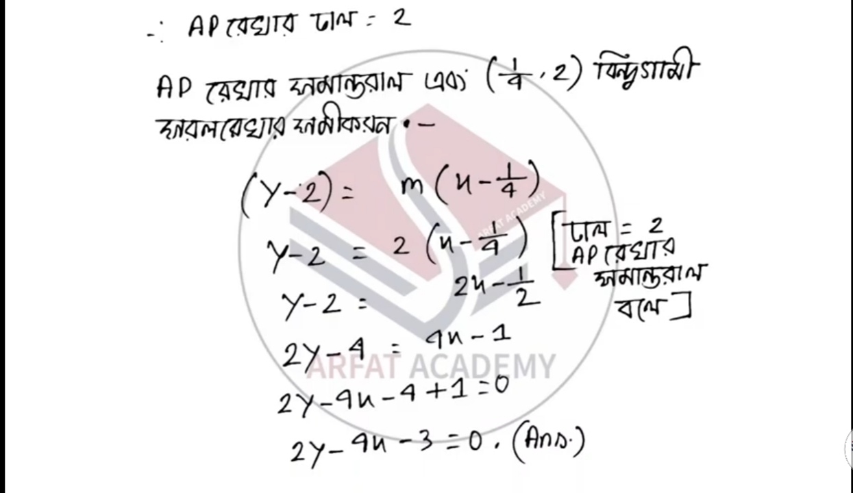 - ঘ) (2) বিন্দুগামী ও AP রেখার সমান্তরাল সরলরেখার সমীকরণ নির্ণয় কর। (AP রেখার ঢাল নির্ণয় করে (2) | বিন্দুগামী সরলরেখার সমীকরণ নির্ণয় করবে।)