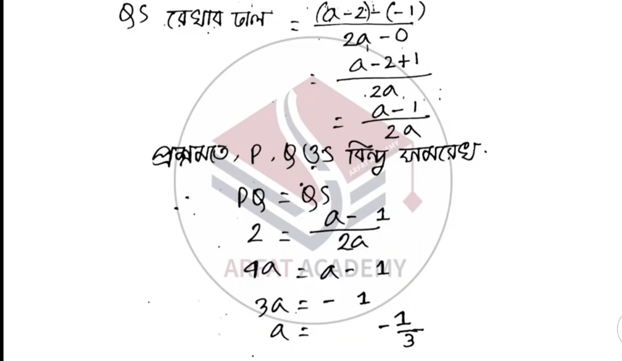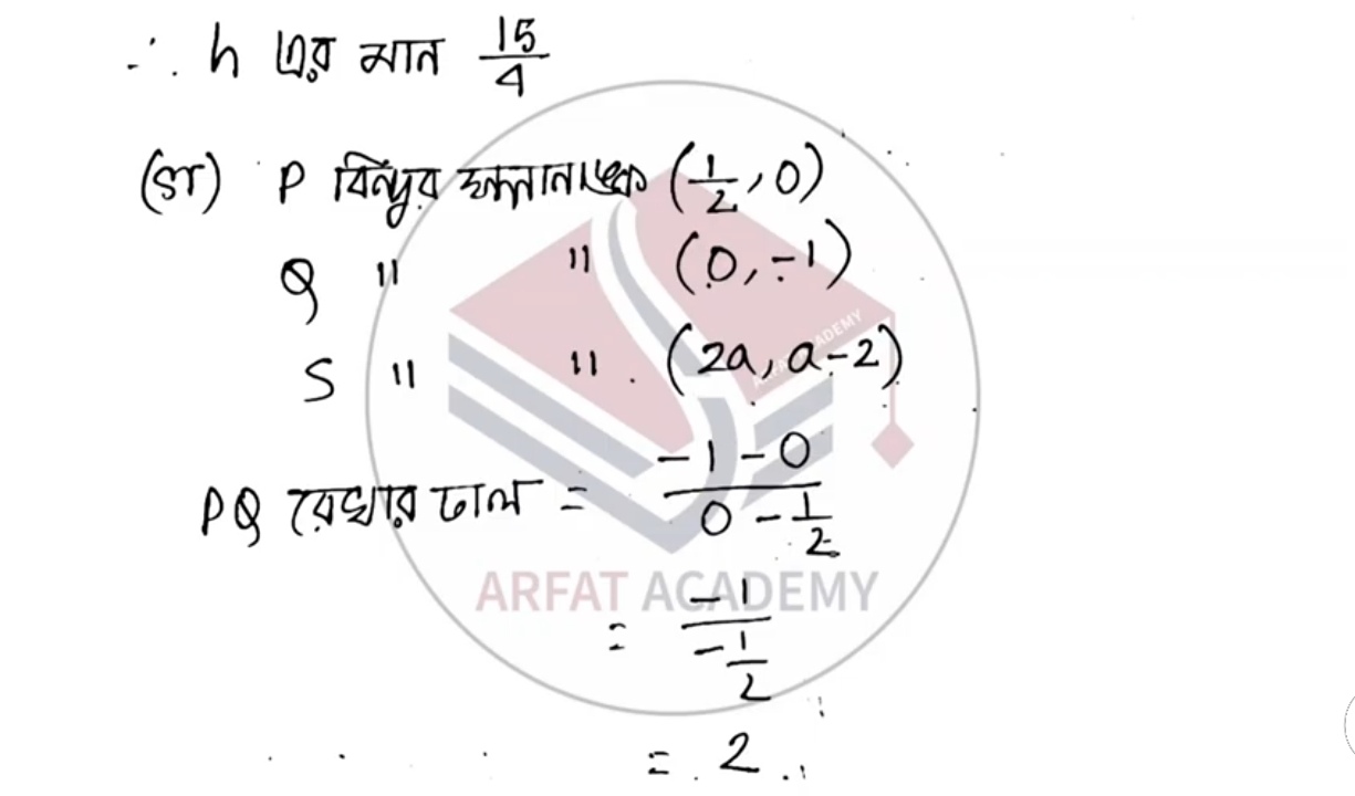 - গ) P Q ও S(2a, a -2) বিন্দুত্রয় সমরেখ হলে, S বিন্দুর স্থানাঙ্ক নির্ণয় কর। (ক্ষেত্রফলের বা ঢালের সূত্র ব্যবহার করে ১ বিন্দুর স্থানাঙ্ক নির্ণয় করবে।)।