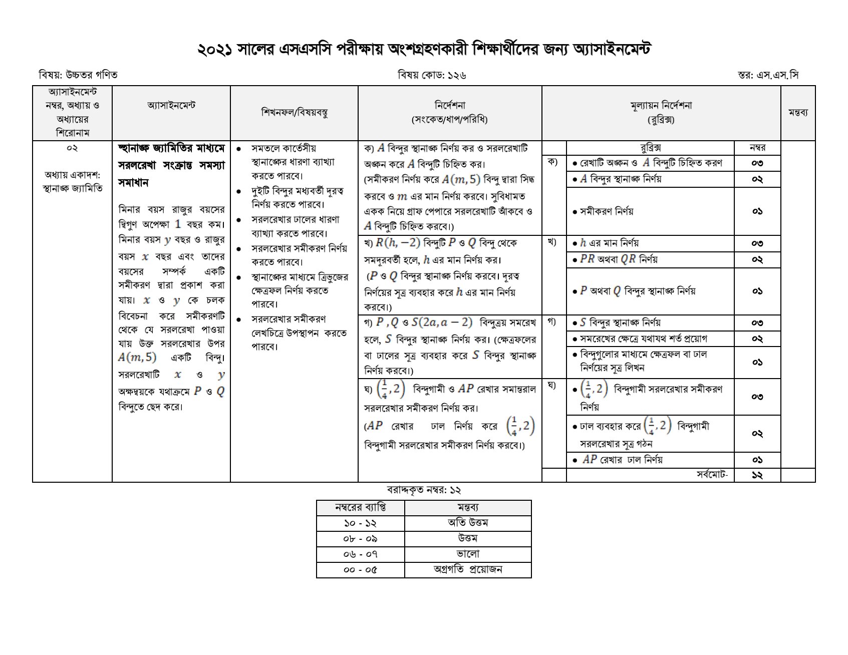 অ্যাসাইনমেন্ট : স্থানাঙ্ক জ্যামিতির মাধ্যমে সরলরেখা সংক্রান্ত সমস্যা সমাধান
