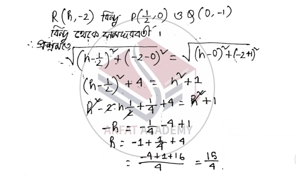 - খ) R(h, -2) বিন্দুটি P ও Q বিন্দু থেকে | সমদূরবর্তী হলে, h এর মান নির্ণয় কর। 1 (P ও Q বিন্দুর স্থানাঙ্ক নির্ণয় করবে। দূরত্ব নির্ণয়ের সূত্র ব্যবহার করে h এর মান নির্ণয় | করবে।)