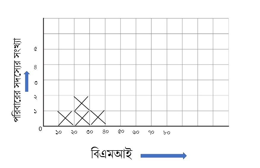 পরিবারের সদস্যদের বডি মাস। ইনডেক্স (BMI) তথ্য থেকে প্রত্যেকের জন্য খাদ্য গ্রহণ সংক্রান্ত একটি পরামর্শ তালিকা প্রস্তুতকরণ।