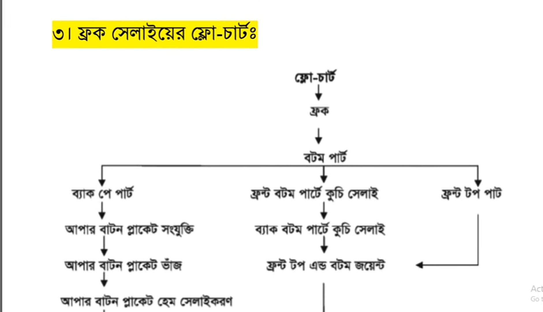 - ফ্রক সেলাইয়ের প্রসেস / অপরেশন ব্রেকডাউন ব্যাখা করতে হবে। ফ্ৰকসেলাইয়ের ফ্লোচার্ট লিখতে হবে