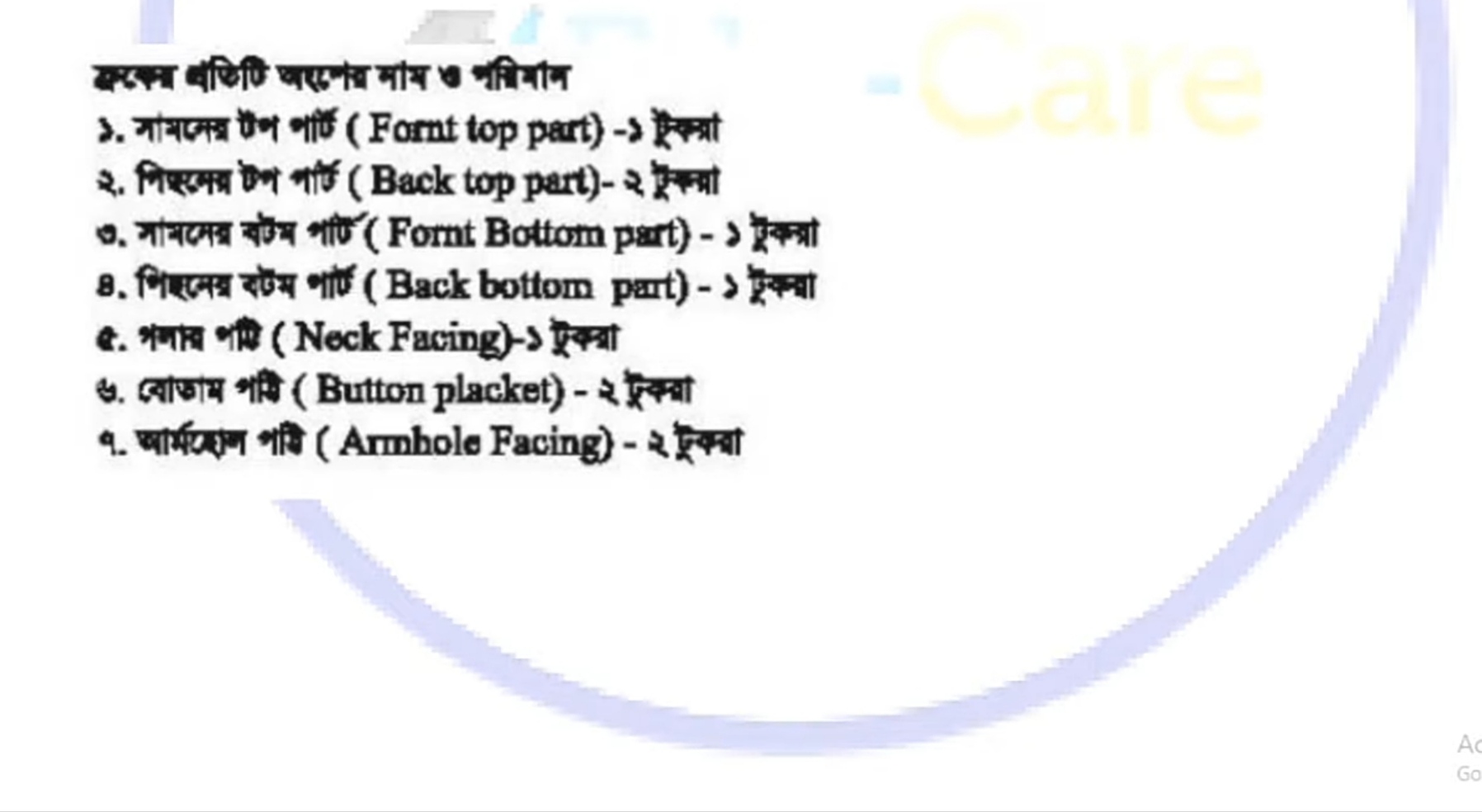 - ফ্রকের প্রতিটি অংশের নাম ও পরিমান লিখতে হবে।